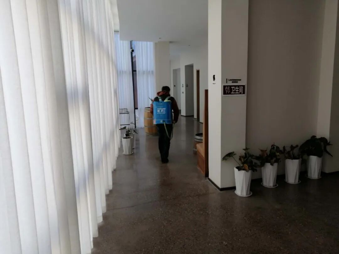 酒庄的值班同事开始每日两次的消毒;