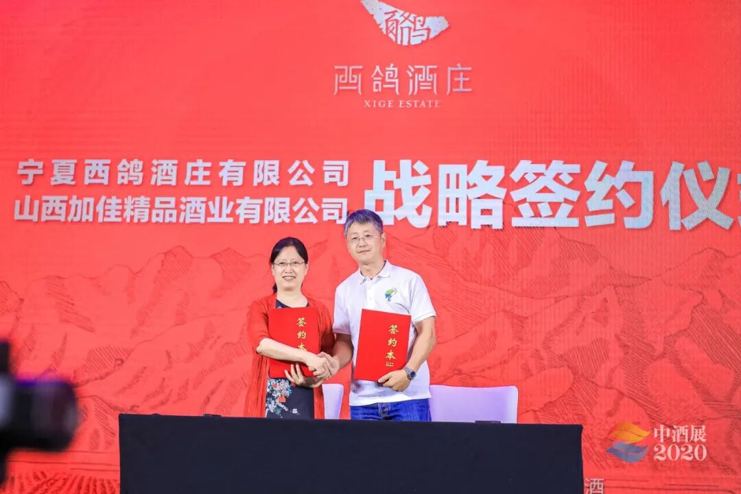 吴忠市葡萄酒产业联盟推介晚宴期间,西鸽酒庄与山西加佳精品酒业正式签订合作协议,此次签约将全面启动西鸽酒庄系列产品在山西市场的品牌运营与销售。加佳是山西最大的中国精品酒商,年销售额近亿元,此次成为西鸽酒庄山西省战略合作伙伴,足以见得其对贺兰山东麓产区和西鸽酒庄的充分认可。