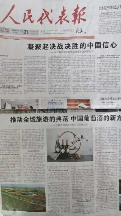 5月23日,《人民代表报》上刊登了一篇关于宁夏西鸽酒庄有限公司发展纪实的文章《推动全域旅游的典范,中国葡萄酒的新方向》。此次《人民代表报》大幅版面聚焦中国葡萄酒产业发展中的代表型企业,这意味着中国葡萄酒的未来发展是被期待的,而宁夏西鸽酒庄有限公司被定义为“新方向”,更是为中国葡萄酒的发展树立了一个鲜活的榜样。