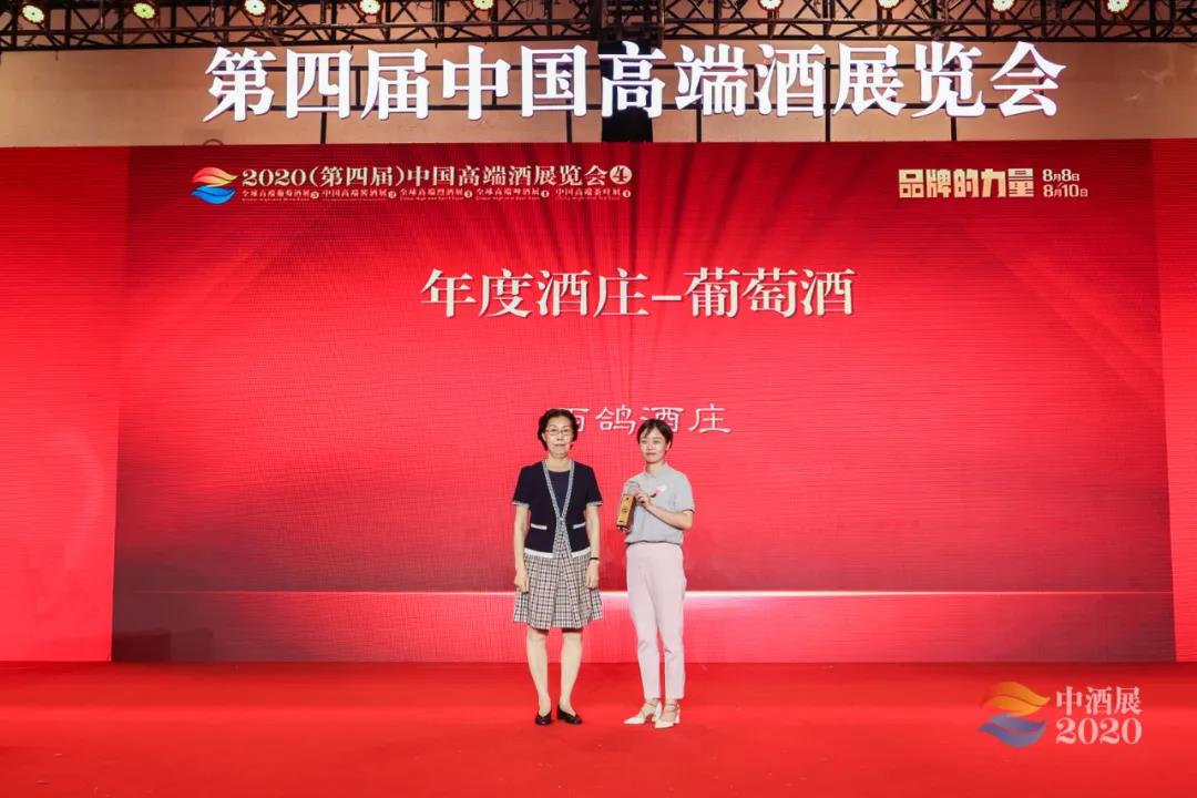 2020年8月8日,在第四届中国高端展览会主论坛上,西鸽酒庄荣获中国酒业年度酒庄(葡萄酒)称号,同时获得中国酒业年度酒庄(白酒)称号的是郎酒庄园。