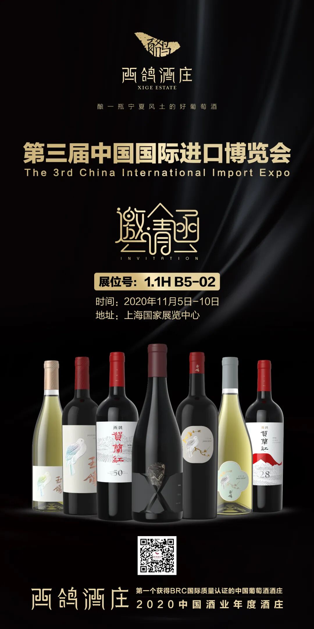 第三届中国国际进口博览会将于2020年11月5日至10日在上海国家会展中心举办。西鸽酒庄(展位号:1.1H B5-02)将携旗下战略品牌贺兰红、玉鸽亮相进博会,与国际名庄同台竞技。