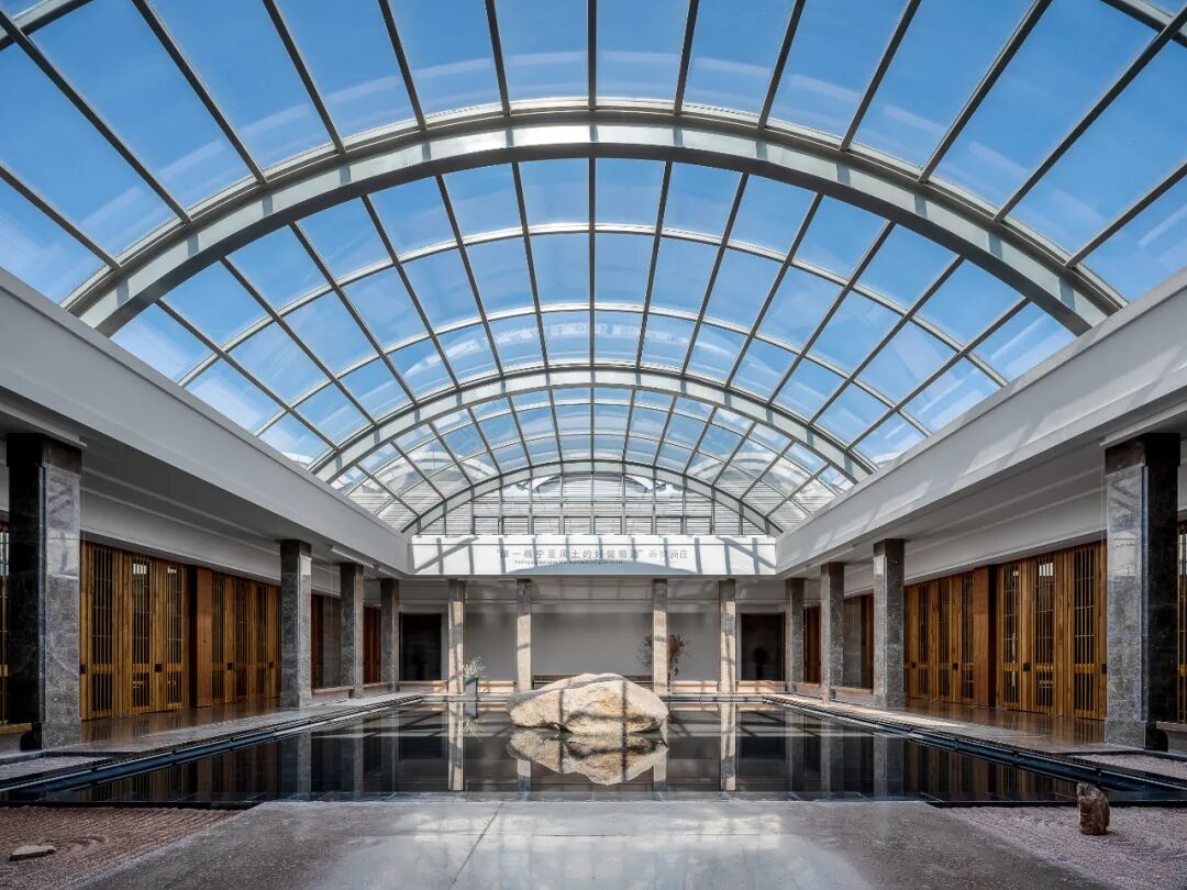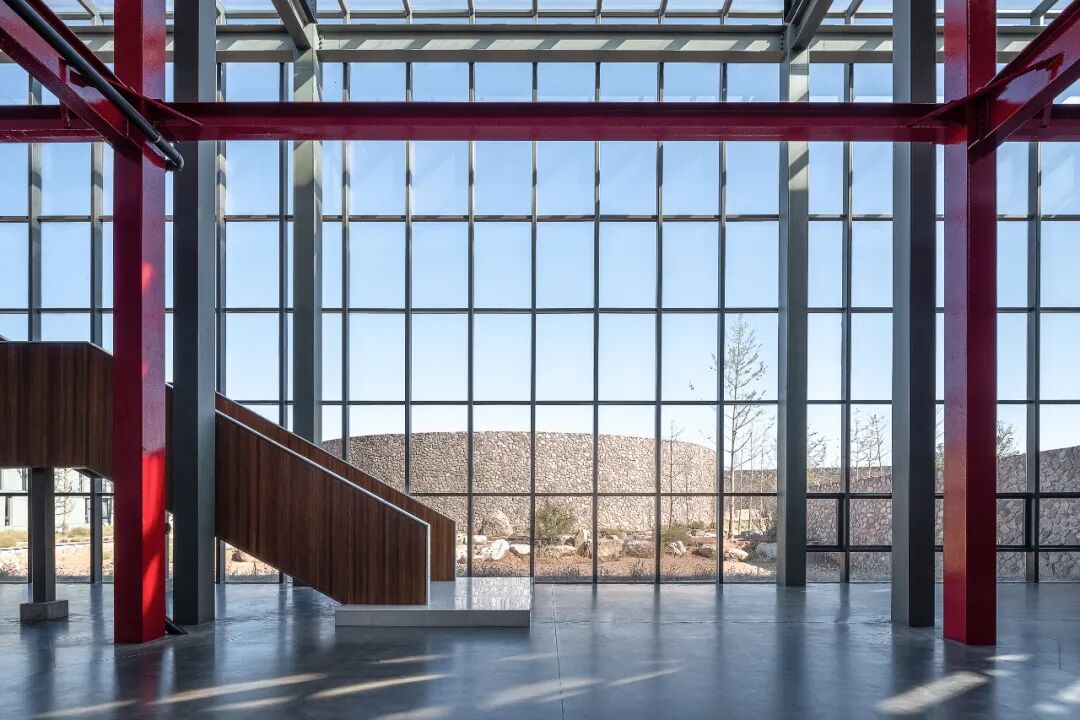 The courtyard dominated by local plants is another way to adapt to local conditions. Its interior is still the natural landscape of Ningxia. Red willow, camel thorn, sea buckthorn and the huge Helan Mountain stone are staggered into the scene, frame into the arc of the circular outer wall, and are tamed while still maintaining the natural strength.