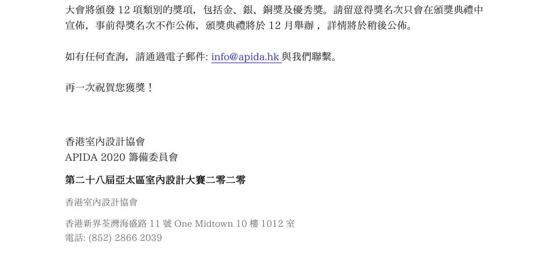 APIDA 亚太区室内设计大奖由香港室内设计协会(HKIDA)主办,旨在表彰杰出的室内设计项目和设计师,并在室内设计实践中推广专业标准和职业道德。该奖项1992年创立以来,发掘并成就无数业界青年才俊,是室内设计师获得全球认可和公众好评的绝佳机会。